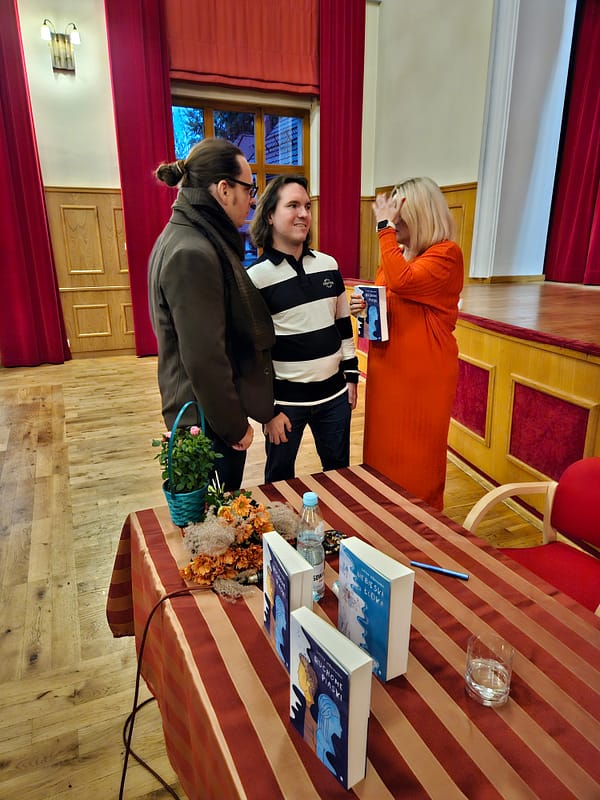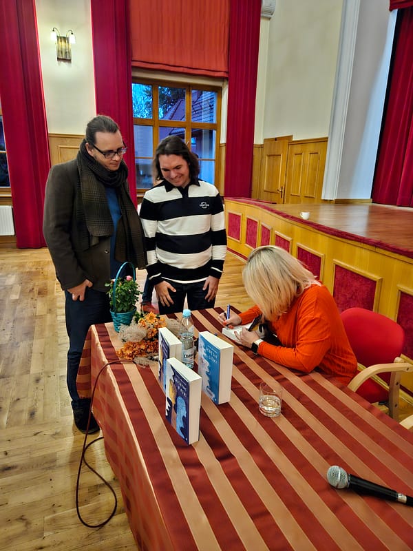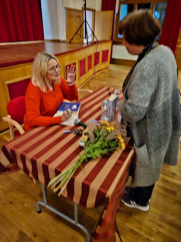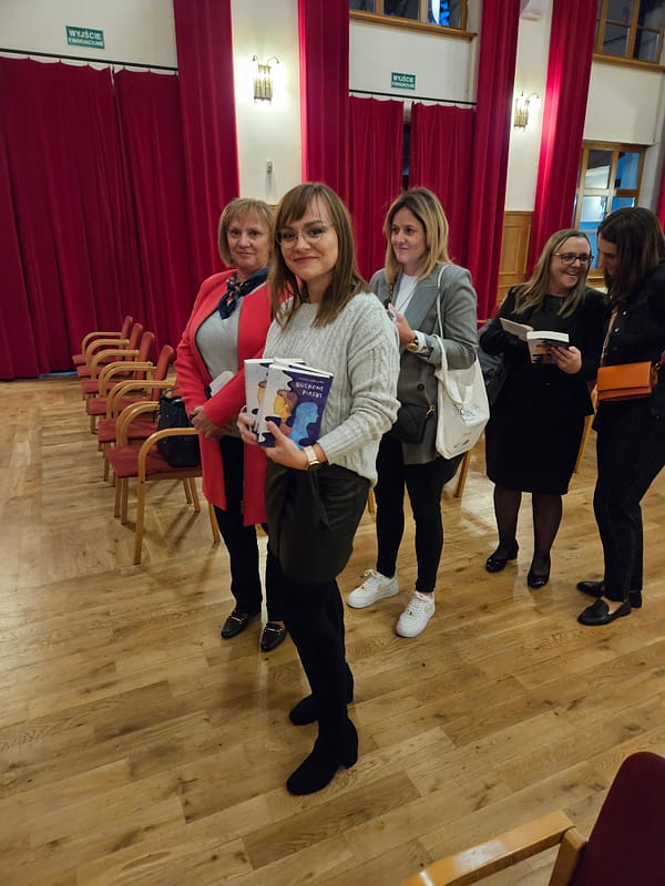 Dlatego podczas spotkania autorskiego, które odbyło się w Miejskim Domu Kultury ,,Szopienice-Giszowiec”. Filia nr 2, padało wiele intrygujących pytań. Fabian Cieślik, wydawca cyklu: ,,Julia i Zygi” tym razem wcielił się w rolę prowadzącego. Rozmowa przebiegła w swojskiej atmosferze i myślę, że to nie tylko moje odczucia. Po uśmiechach i licznych pytaniach ze strony Czytelników wnioskuję, że tego wieczoru wszyscy dobrze się bawili. Dla mnie to był szczególny dzień. Wasza obecność, ciałem jak i duchem, zawsze sprawia, że nabieram wiatru w żagle, nie inaczej było i tym razem. Wiem, że czekacie na dalsze losy Julii i Zyiego i jest mi z tego powodu niezmiernie miło. Będą. Taką mam nadzieję, bo nie wyobrażam sobie, żebyście nie poznali kompletnej historii. A wierzcie mi, jest o czym opowiadać!