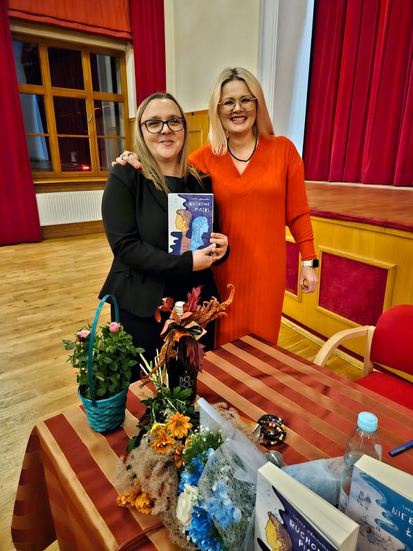 8-go października odbyła się oficjalna premiera mojej drugiej powieści: ,,Ruchomych piasków”, kontynuacji ,,Niebieskiej łódki”. Powtarzam się, ale co mi tam! Powiem to jeszcze raz. Uwielbiam pisać, zwłaszcza o Julii i Zygim. To zwyczajni młodzi ludzie, a jednak bije od nich ponadprzeciętność i nie mówię tylko o talentach, w jakie ich wyposażyłam. Co ich wyróżnia od rówieśników? Przede wszystkim są nazbyt dojrzali jak na swój wiek. Kto czytał ,,Niebieską łódkę i ,,Ruchome piaski” wie, skąd się to bierze. A do tego dochodzą jeszcze te skomplikowane uczucia! Miłość, zauroczenie, przyjaźń… Jak to wszystko poukładać we wrażliwym sercu? Czy wystarczy tam miejsca na te wszystkie emocje? Można się w tym pogubić.