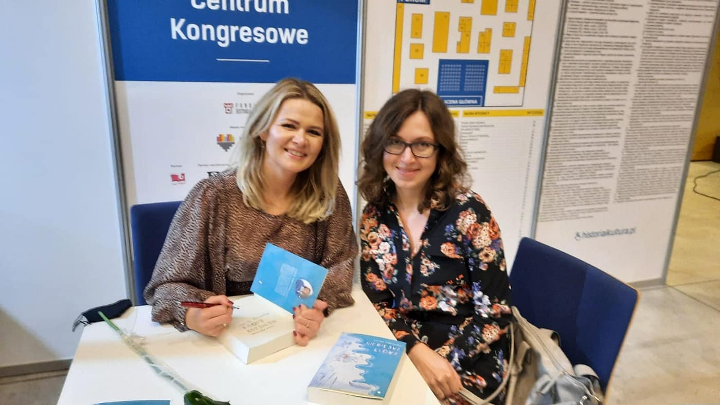 Na następne spotkanie nie musiałam długo czekać, bo tydzień później pojechałam do Gdańska na kolejne Targi Książki. Tam również przeżyłam wachlarz emocji, chociaż stres przed rozmową był ciut mniejszy od tego, który towarzyszył mi w Katowicach, to był i nie mogłam tego ukryć. Trzęsące się i pocące dłonie, suchość w gardle i pustka w głowie. Czy może być coś gorszego w momencie, kiedy wszyscy na ciebie liczą? Mam jednak w życiu wielkie szczęście i otaczają mnie wspierające osoby, które nie skąpią dobrych słów – mój mąż jak zwykle stanął na wysokości zadania. Ślę wielkie serducho 🙂