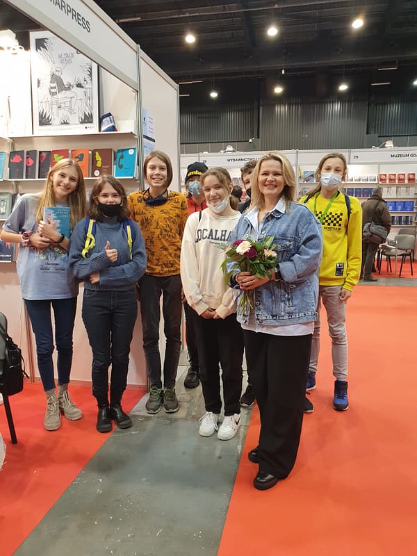 Kiedy byłam w wieku nastolatków przysłuchujących się naszej rozmowie, miałam głowę pełną marzeń tylko nie bardzo wiedziałam, ja je posegregować i czy w ogóle powinno się to robić. Teraz wiem, że najważniejsze jest żyć w zgodzie ze sobą i pozwolić dojść do głosu wewnętrznym podszeptom, które pokierują nas na odpowiednią drogę. Nie spodziewałam się, że tak licznie zgromadzona młodzież, będzie z takim zaangażowaniem uczestniczyć w tym spotkaniu, a potem ustawi się w kolejce po dedykacje. Dziękuję Wam ogromnie, bo w końcu dla Was pisałam tę książkę 🙂