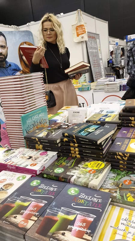 Pożegnałam uśmiechniętego mężczyznę i poszliśmy dalej z nadzieją, że wszyscy wystawcy będą, tak jak on, mocno zaangażowani w sprzedaż – w większości byli, tak więc bez trudu zapełniłam torbę książkami.